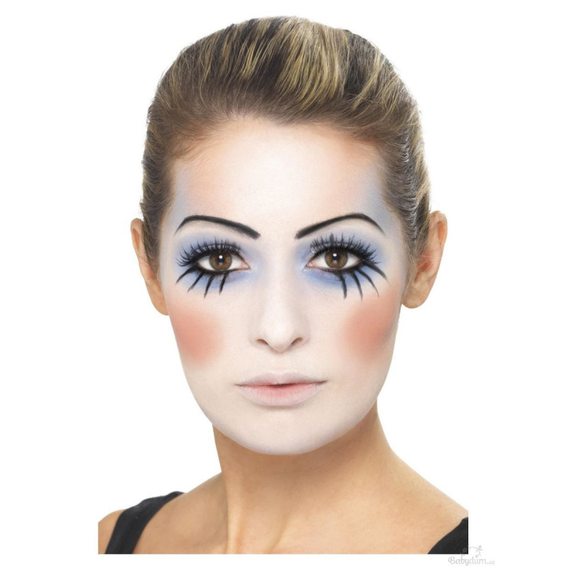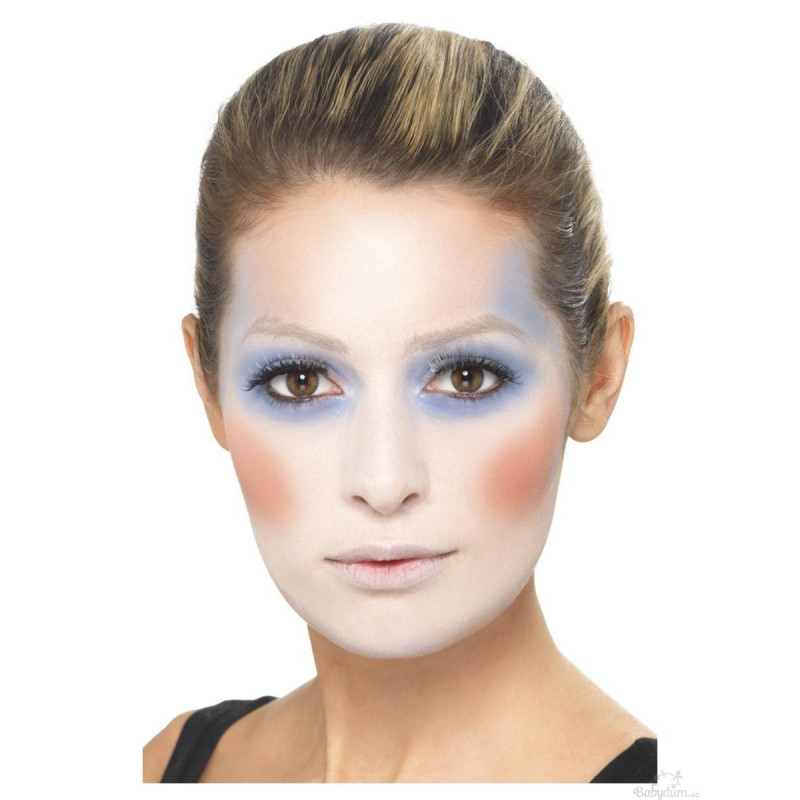 Make-up - bílá, modrá, červená, černá, klaunský nos, houbička, štěteček, modrá a červená pastelka na obličej.