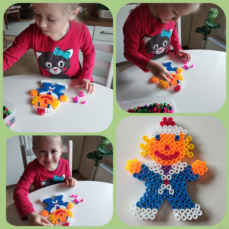 Pomůcka k procvičení fantazie, zručnosti, trpělivosti, rozeznávání tvarů a barev, motoriky atd.