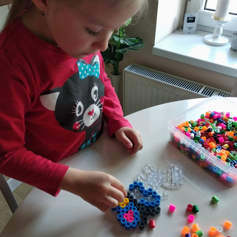 Pomůcka k procvičení fantazie, zručnosti, trpělivosti, rozeznávání tvarů a barev, motoriky atd.